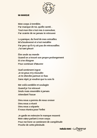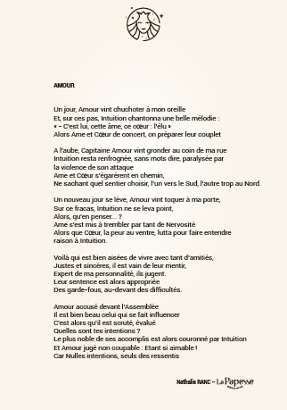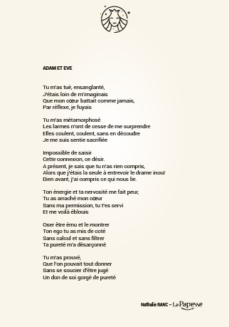 Authentique et alignée, Nathalie RANC écrit avec cette fulgurance énergique et travaille ses textes engagés entre rigueur et simplicité. Bienvenue dans cet espace dédié à la création.