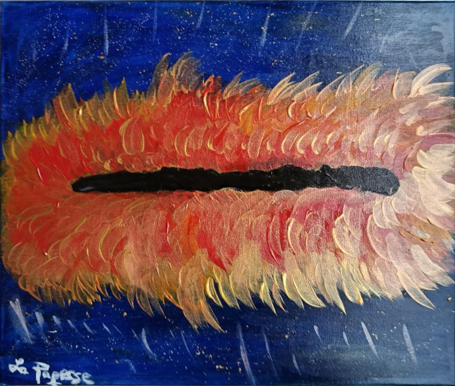 Maintenant, je vous invite à être témoin de ses œuvres non -conventionnelles. Chaque œuvre présentée est une invitation à l’émotion. Je vous souhaite une belle visite et une rencontre sincère avec l’univers artistique authentique exposé.